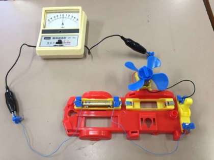 理科の学習で、電気の学習をしています。電池の向きを変えるとモーターの回る向きはどうなるのか調べるための実験をしました。回路図を自分で書き、その通りに回路を作って調べました。結果は各班とも、モーターの向きが逆になることがわかったようでした。