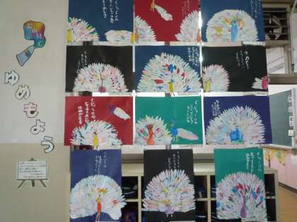 図工科で制作していた「絵の具でゆめもよう」…すなわち『くじゃく』がようやく完成しました!!