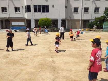 運動委員会(超好きスポーツ委員会)が企画しているわくわくタイムの様子です。たてわりで遊びながら交流するのが目的です。4年生も下級生たちにやさしくやりかたを教えていました。図書委員会が紙芝居を読んだり、給食委員会が毎日メニューの紹介をしたりと、みんな慣れてきてどんどん活躍の幅を広げています。