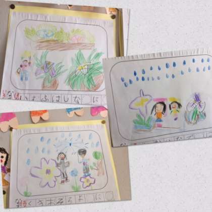 7日(火)に行った菖蒲園の絵日記が完成しました。菖蒲はとても難しい形をしていますが、みんなよく覚えていて上手に描けています。
