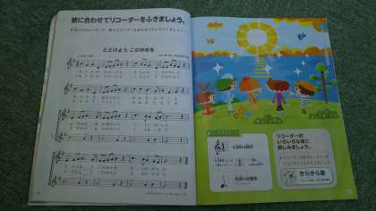 今日は音楽で新しい歌(とどけようこの夢を)や新しい音符(付点4分音符)、リコーダーの新しい音(高いドの音)を学びました☆