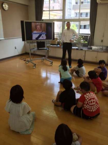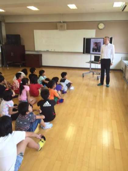 ダニエル先生です。イギリス出身で、日本人の奥様を持つ先生です。あいさつの練習をしたり、自己紹介の練習をしたりしました。4年生は外国語が好きなようで、終始楽しそうな様子で過ごしていました。次回が楽しみです。
