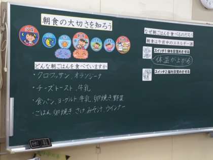 6年生はほぼ全員が毎日朝ごはんを食べてきています。パンの子、米飯の子とそれ以外の子といます。起きる時間が遅いと食べられないこともあるそうです。