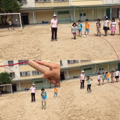 休み時間には、先生も子どもも全員が運動場に出て、大縄跳びをすることもあります!
