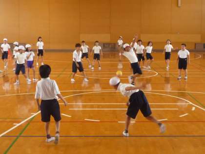 はじめに体ほぐしの運動をして、そのあと久々にドッジボールをしました。