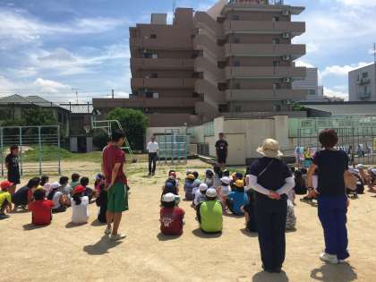 避難訓練の放送を聞き、「おさない・はしらない・しゃべらない・もどらない」の約束を守って速やかに避難することができました。予想していたよりもスムーズに避難できたので、素晴らしかったです。