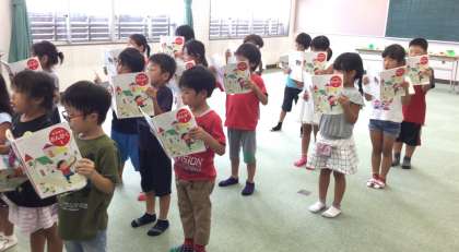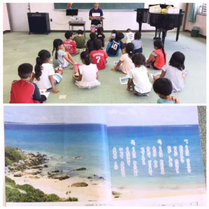 まずは「うみ」の歌を歌いました。広い大きな海を思い浮かべて歌います。自然と体が揺れて歌っている子もいましたよ。