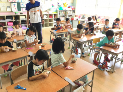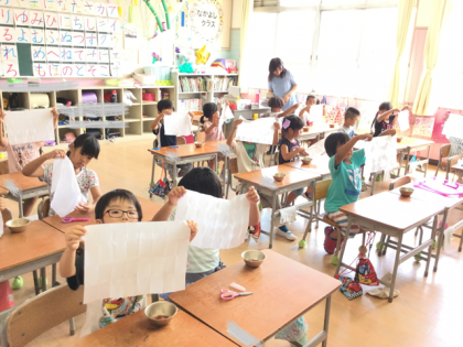 生活科では、自分の身の回りにあるものでの遊び方を学習しています。