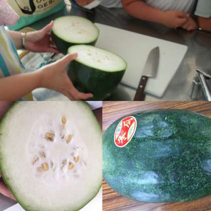 まず、調理する前の冬瓜を見せると子どもたちはびっくりしていました!