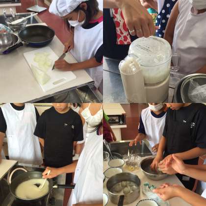 そして、調理開始♪二班に分かれて手際よく調理することができて、時間内に完成しました。