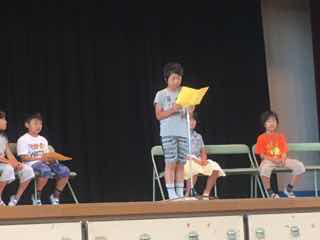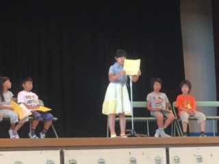 全学年の前で、堂々と作文を発表する子どもたちは立派でした。