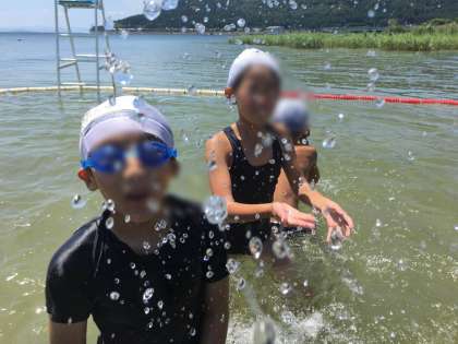 午前最後の活動は、湖水浴です。
