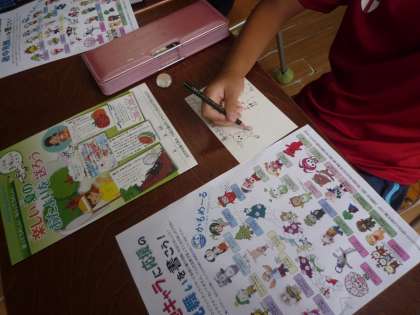 毎年学校に届く、暑中見舞いのはがきを使って、ご当地キャラに暑中見舞いを書きました。お返事が届く!とあって、子どもたち、真剣にどのキャラに書こうかと考えていました。