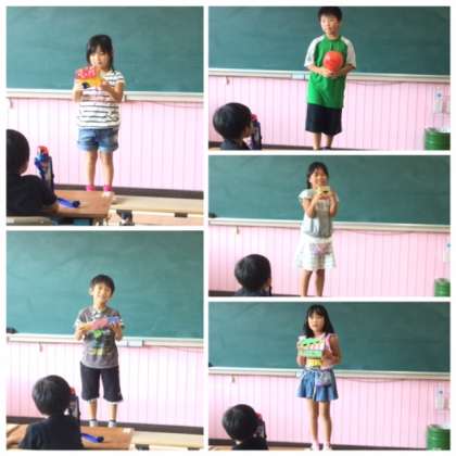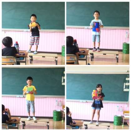 今日の5時間目は、夏休みの宿題や自由研究、自由課題で作ってきた作品の鑑賞会を行いました。