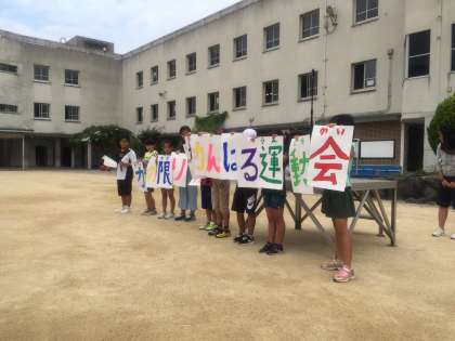 今日の児童朝会で運動会の目標が発表されました。「力の限り精一杯がんばる運動会」です。10月2日(日)の運動会に向けて精一杯練習していきます。