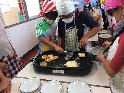 パンケーキ・ジュース・バターと作るものは多かったのですが手際よく片付けなどをしてくれたので、講師の方も褒めてくださいました!