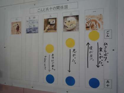 ごんの気持ちを考え、ペアで交流したり、グループで交流したりと、自分の考えを伝え合う活動に意欲的に取り組んでいます。