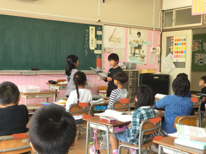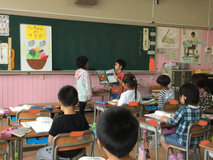 今日は、昨日の続きで『サラダのひみつ』をりっちゃんがお母さんに伝える場面を学習しました。