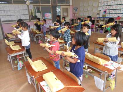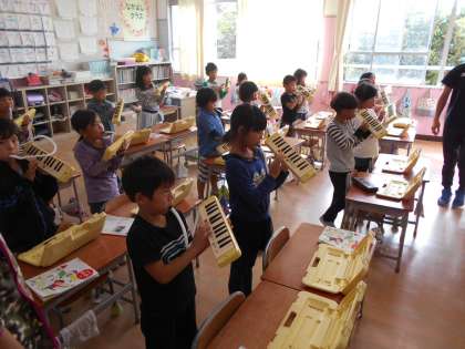 今日の音楽の授業では、鍵盤ハーモニカを持って立ち、まっすぐ前を向きながら、演奏しました☆