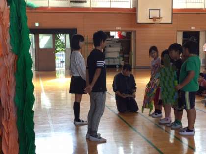6年生は、集会の中で生江小学校の平和宣言を読み上げました。「朝、行ってきますといったまま帰ってこない・・・」この文は、明日教室の前に貼っておきたいと思います。