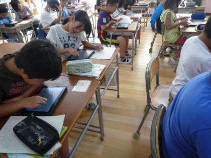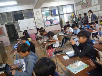 今日は学習参観日でした。タブレット端末(iPadではないですが・・・)を使って国語の学習です。全員の「ごんぎつね」を読んだ感想を取り込み、それを読みながらよいところを交流しました。みんな、友達のよいところを見つけるのが上手です。お互いにほめあって、満足そうにしていました。これからも色々な活動に取り入れていきたいと思います。