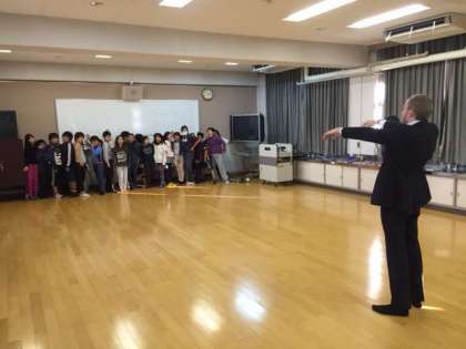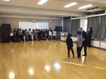 今日はダニエル先生と外国語の学習をしました。初めにハロウィンについて、どこが発祥か(イングランド)、何年前からやっているのか(約千年前)、などのお話をしてくださいました。もちろん英語です。子どもたちはなんとなくわかったような、わかっていないような反応ですが、興味を持って聞いていました。その後、ハロウィンに関するゲームをしました。「トリック オア トリート」のかけ声に対して、お化け役のダニエル先生が返事をします。「トリート」なら、一歩進み、「トリック」なら捕まらないように逃げる遊びです。大喜びで楽しんでいました。