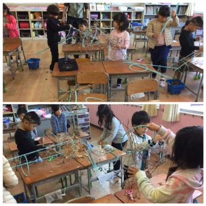 少しボリュームが少ない子には、2年生からもらったサツマイモのツルを巻いています。