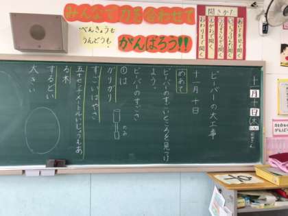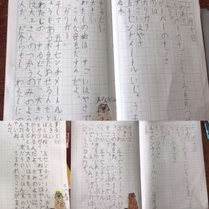 最後にはビーバーになりきってビーバーの歯について、文を書きました。