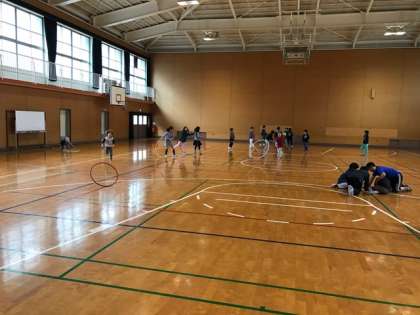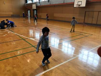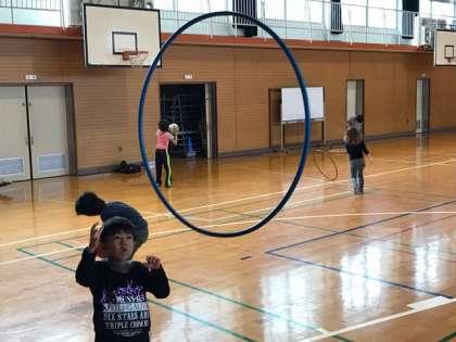 フラフープやボールを使って、技の練習をしたりボールの投げ合いをしたりして、とても楽しそうでした(^^)