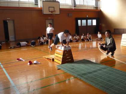 体育では、マット運動から跳び箱運動へと学習が進んでいます。