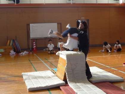 マット運動では、練習するたびに続々とできる技が増え、子どもたちのやる気が満ち溢れていました。