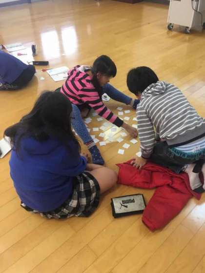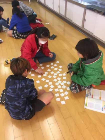 今日の英語はアルファベットの書いたカードを使って、神経衰弱のゲームをしました。