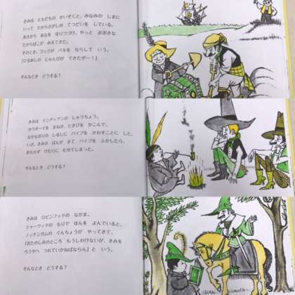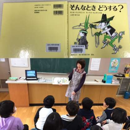 それぞれの場面で、子どもたちは、笑いながら「どうしよう。」と声をあげていました。とても面白い本でしたよ。