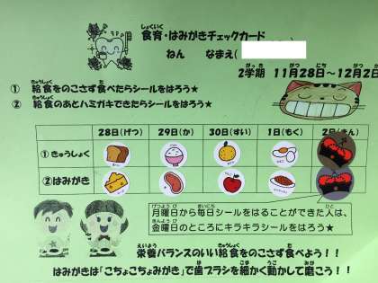 11月28日(月)〜12月2日(金)まで「食育・ハミガキ週間」でした。