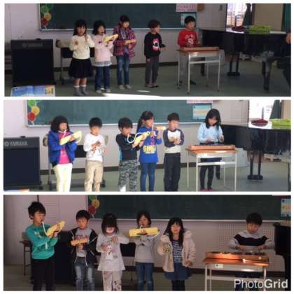どの楽器を使ったら曲に合うかを考えたり、自分たちでアレンジを考えたりして、とっても楽しい合奏になりました^^