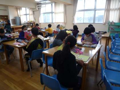5時間目終了5分前には、子どもたちの楽しみな「読み聞かせタイム」が始まります。