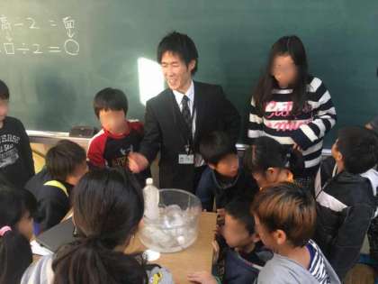 > > 写真は実験の結果をみんなで観察している様子です!!