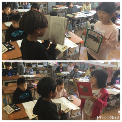 今日はみんなの前で、どんなやりとりをしているか発表し合いました。とても上手にやりとりしていて、会話が弾みました。