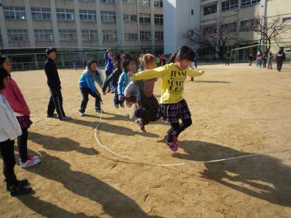 先週より「なわとび週間」がスタートし、20分休みには運動場でなわとびの練習をしています。