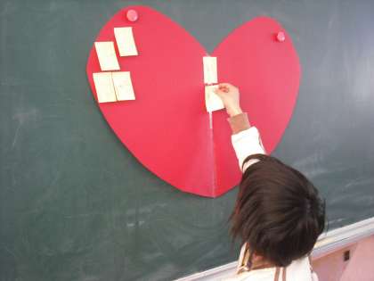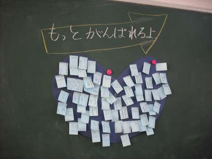 話し合いで発表の流れが決まったので、次は学級目標に沿ってどんなことができたかを考えました。