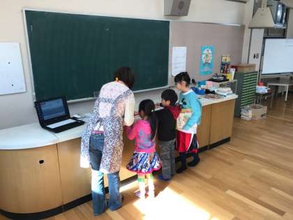 子どもたちは図書室に入るなり、次々と自分の読みたい本を探し、借りていました。
