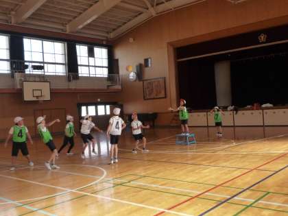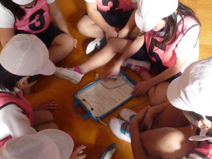 今日は、チームごとにキャプテンを決めたり、めあてを決めたり、作戦を考えたりしました。