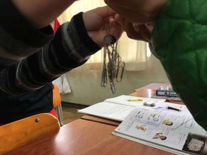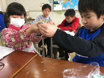うまくいった班は、どどどっと、クリップがくっついて、歓声が上がっていました。