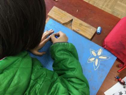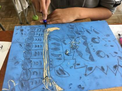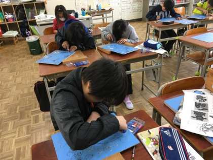 丸刀、三角刀、平刀を使い分けて、工夫して表現します。