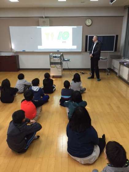 今日は外国語活動の授業があり、ダニエル先生に英語のクイズを出してもらいました。ヒントを3段階に分けて教えてもらい、最初の方に正解できるとポイントが高くなります。たとえば、1「キャラクター」2「イエロー」3「ポケモン」といった問題です。みんな英語での説明に戸惑っていましたが、やり方を理解した後はとっても楽しんで取り組んでいました。