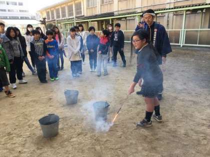 打ち上げ花火の体験では、大きな歓声が上がりました。