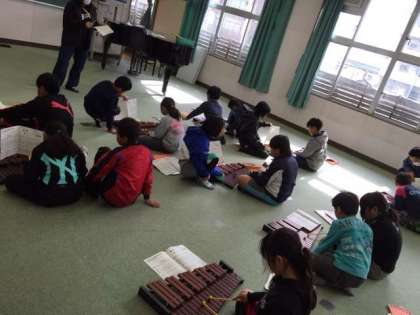 みんなで「茶色のこびん」を合奏するために、木琴を練習しています。リズムもメロディも今までとは一味違います。2本同時に和音をつくりながらたたいていきます。なかなかうまくいかないけれど、出来たときの達成感もまた大きいです。