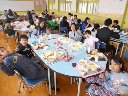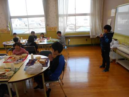 今日の給食は、5年生との交流給食でした。久しぶりにランチルームで給食を食べたのですが、みんなとても楽しみにしていました☆でも、少し緊張していたようですが・・・楽しく給食を食べることができました♪プレゼントに作っていた折り紙の雪だるまも、喜んでもらってよかったです♪