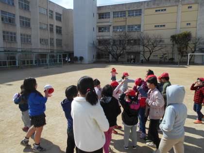 給食の後の昼休みには、5年生と一緒に鬼ごっこをしました☆校庭いっぱいを五年生と一緒に走りまわり、とても楽しく過ごすことができました♪