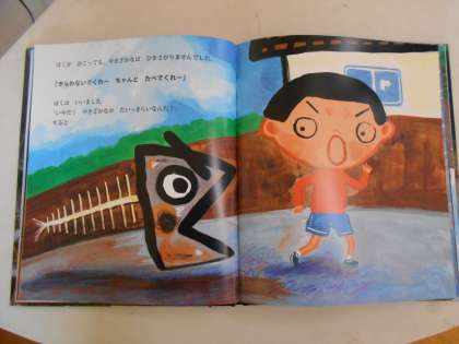 今日の絵本は、「やきざかなののろい」です。タイトルだけ聞くと、少し怖い印象ですが、本の中身は、好き嫌いなく食べようねという内容でした♪